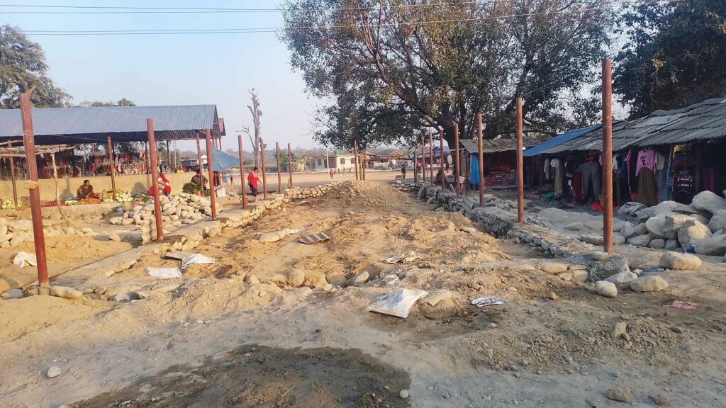 वडा नम्बर १ ले लाखौ रुपैयाँ खर्चे ट्रस निर्माण गर्दै गर्दा हाट बजार भित्रको रुख हटाउने तर्फ भने वडा कार्यालय नगरपालिकाले चासो देखाएको छैन ।