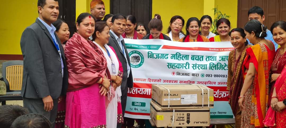 टेकराज भण्डारी/बारा । निजगढ महिला बचत तथा ऋण सहकारी संस्थाले आफ्नो स्थापना दिवसको अवसरमा विद्यालयमा पङ्खा हस्तान्तरण गरेको छ । संस्थाको आफ्नो १७ औं स्थापना दिवसको अवसरमा निजगढ नगरपालिका वडा नम्बर ७ मा रहेको श्री सत्यश्वर शिवशक्ति आधारभूत विद्यालयलाई ८ थान सिलिङ पङ्खा हस्तान्तरण गरेको हो । विद्यालयमा एक कार्यक्रमको आयोजना गरी पङ्खा वितरण गरिएको थियो । नेपाल बचत तथा ऋण सहकारी संघका केन्द्रीय सदस्य समेत रहेका संस्थाकी अध्यक्ष शोभा राउतको अध्यक्षतामा भएको कार्यक्रमका प्रमुख अतिथि निजगढ नगरपालिका वडा नम्बर ७ का वडा अध्यक्ष टेक बहादुर लामा रहेका थिए ।