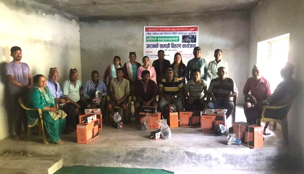 निजगढ । बारा जिल्ला निजगढ नगरपालिका वडा नम्बर ४ को सहयोगमा दलित समुदायलाई आरन जन्य सामग्री वितरण गरेको छ । बागभैरव सामुदायिक बन उपभोक्ता समितिको सभाहलमा एक कार्यक्रम आयोजनागरी निजगढ क्रियटिभ स्किल डेभलपमेन्ट प्रा.लि.ले सो सामग्री वितरण गरेको हो । निजगढ नगरपालिका वडा नम्बर ४ कार्यालयको आर्थिक सहयोगमा वडा भित्रका “दलित महिला तथा विपन्न लक्षित कार्यक्रम”अन्तरगतबाट वडाका विपन्न दलित समुदायलाई उक्त सामाग्री वितरण गरेको वडा अध्यक्ष विशन सापकोटाले जानकरी दिएको छ ।