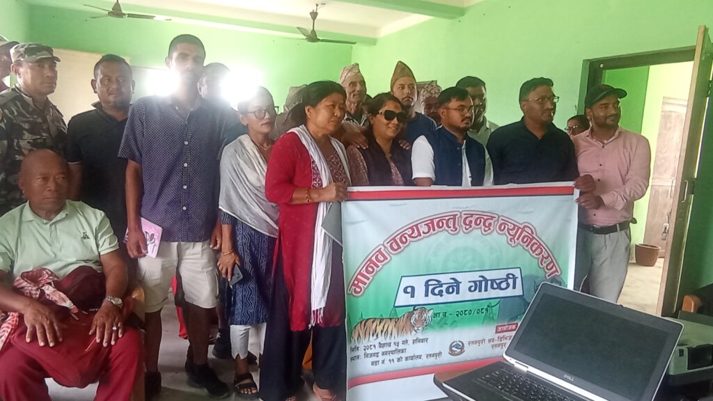 बारा । बाराको निजगढ नगरपालिका वडा ११ रतनपुरमा मानव वन्यजन्तु द्वन्द न्युुनीकरण सम्बन्धि एक दिने अन्तरक्रिया गोष्टि सम्पन्न भएको छ । बारा जिल्ला सव डिभिजन वन अन्तर्गतको सामुदायिक वन उपभोक्ता समितिहरु विच सव डिभिजन स्तरीय अन्तरक्रिया कार्यक्रम रतनपुर सव डिभिजन वन कार्यालयले शनिबार आयोजना गरेका थिए । रतनपुरी सव डिभिजन वन कार्यालयको आयोजनामा सो गोष्ठी संचालन गरिएको थियो । कार्यक्रम सव डिभिजन रतनपुरीका रेन्जर निरज साहको अध्यक्षतामा भएको थियो भने प्रमुख अतिथि निजगढ नगरपालिकाकी उपप्रमुख सोममाया थिङ्ग रहेकी थिइन । त्यस्तै कार्यक्रममा निजगढ नगर सामुदायिक वन उपभोक्ता महासंघका उपाध्यक्ष धनबहादुर खुलाल गोले, पर्सा राष्ट्रिय निकुञ्जका रेन्जर लक्ष्मण कुमार महतो, मधुवन सव डिभिजन वन कार्यालयका प्रमुख संजय कुमार चौधरी, कलैया सव डिभिजन कार्यालयका प्रमुख संदिप पटेल र निजगढ नगरपालिका सहायक वन अधिकृत अनिल कोइरालालगायत रतनपुर सव डिभिजन अन्तर्गत सामुदायिक वनका प्रतिनिधिहरुको सहभागी रहेको थियो । कार्यक्रमलाई प्रमुख अतिथि नगर उपप्रमुख सोममाया थिङ्गले व्यानर पढेर उदघाटन गरेकी थिइन । कार्यक्रममा बोल्दै प्रमुख अतिथि थिङ्गले पर्यवरण संरक्षणमा सबैको उत्तिकै महत्वपुर्ण भुमिका रहने बताएकी छिन । वन र वन्यजन्तुको संरक्षण गरेमा मात्र सबैको अस्तित्व रहने प्रमुख अतिथि थिङ्गको भनाई रहेकी थिइन । थिङ्गले वन्यजन्तुको पनि यो धर्तीमा उत्तिकै बाँच्न पाउने अधिकार रहेकाले सचेत नागरिकले बुझ्नुपर्ने समेत बताएकी छिन । थिङ्गले कतिपय मानव हितमा रहनु पर्ने अधिकार र वन्यजन्तुले पुर्याएको पशु चौपायाको क्षतिपूर्तिको राहत ऐनले बाधक गरेको समेत बताईन ।