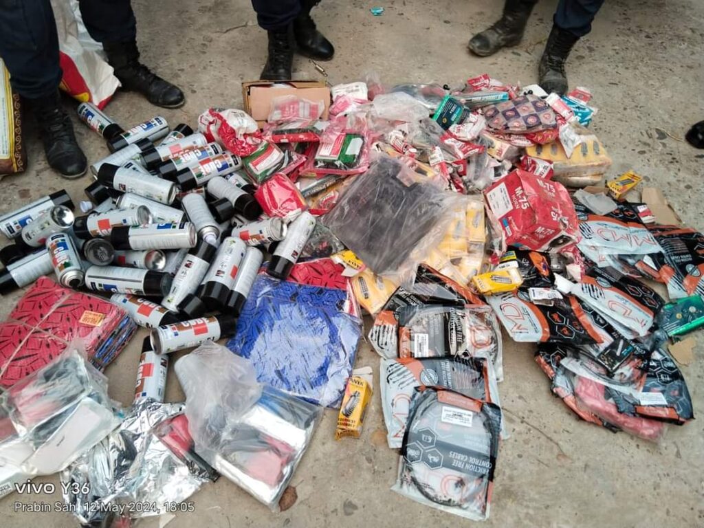 जिल्ला प्रहरी कार्यालयबाट खटिएको प्रहरी गस्ती टोलीले गौर नगरपालिका  वडा नम्बर ५ स्थित विभिन्न सवारी साधन तथा पैदल यात्रुहरु समेतको चेकजाँच गर्ने क्रममा भारतबाट अबैध रुपमा भन्सार छली ल्याउँदै गरेका मोटरसाईकलको स्पेयर पार्टसहरु लगायतका सामान बरामद गरेको हो ।