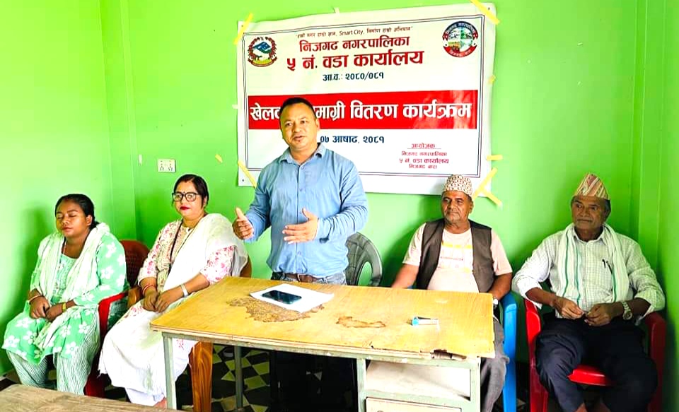 चालु आर्थिक वर्षको लक्षित वर्ग कार्यक्रम अन्तर्गत वडा कार्यालयले ३ वटा क्लबका खेलाडीलाई खेलकुद सामग्री वितरण गरेको हो । वडा नम्बर ५ का वडा अध्यक्ष सुर्य बहादुर थापा मगरले स्थानीय खेलाडीहरुलाई खेलकुदका सामग्रीहरु हस्तान्तरण गरेका थिए ।