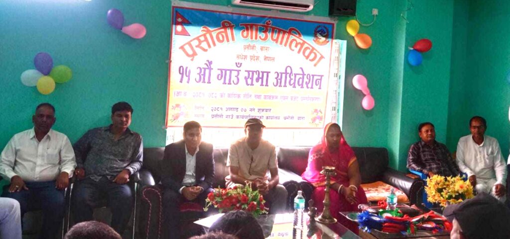 बारा । बाराको प्रसौनी गाउँपालिकाको १५ औ गाउँ सभा शुक्रबार सम्पन्न भएको छ । गाउँपालिकाको सभाहलमा आयोजित सभाले ४७ करोड ५ लाख बजेट प्रस्तुत गरेका थिए ।