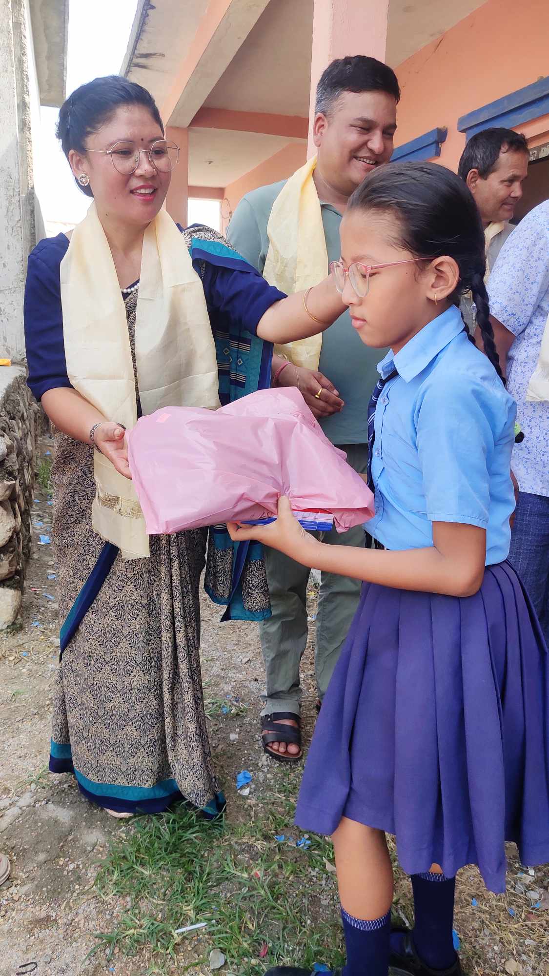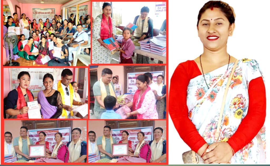 निजगढ–३ सिङ्गौल श्री हिमालय आधारभुत विद्यालयमा ११० जना विद्यार्थीहरुलाई व्याग र शैक्षिक सामाग्री, निजगढ ६ स्थित श्री बाल विकास आधारभूत विद्यालयका १२३ जना विद्यार्थिहरुलाई ड्रेस शैक्षिक सामाग्री वितरण र निजगढ–८ श्री बकैया ठाकुर माध्यमिक विद्यालयमा ६० जना विद्यार्थिहरुलाई ड्रेस र शैक्षिक सामाग्री वितरण गरेको हो । जसमा ३ विद्यालयगरी २ सय ९३ जना विद्यार्थीलाई सो पोशक झोला र कापी कलम वितरण गरेको हो ।