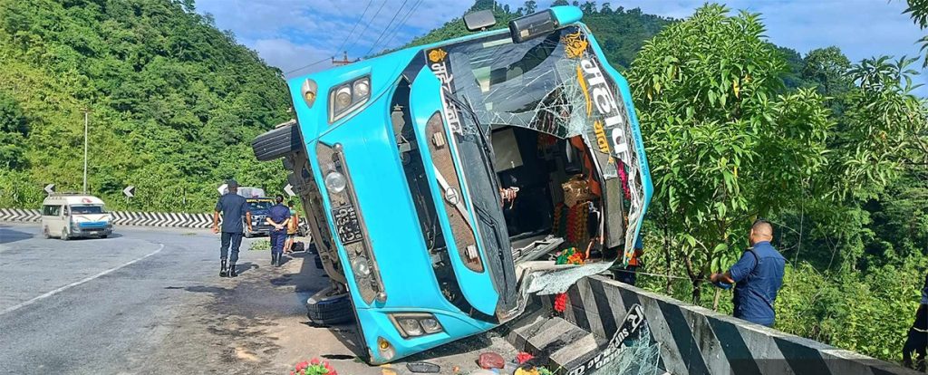भारतमा नेपाली तीर्थयात्री चढेकाे बस दुर्घटना२५ जना घाइते