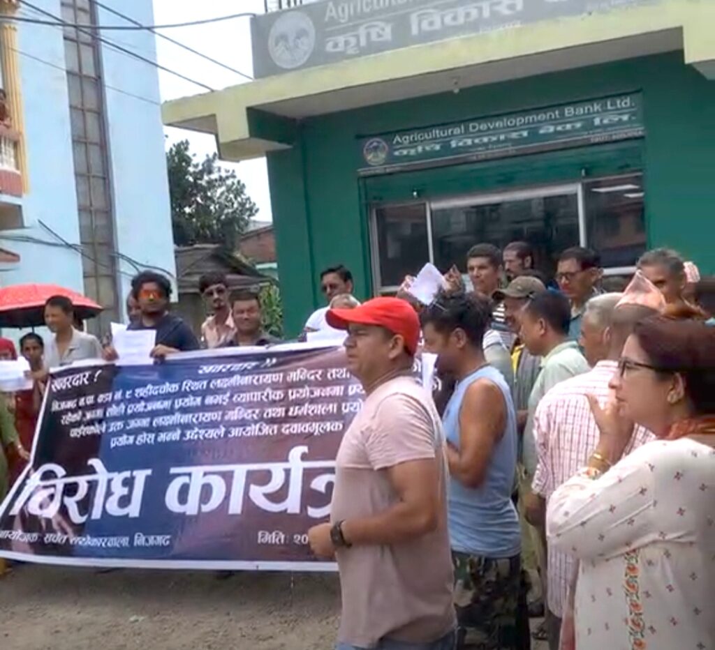 लक्ष्मीनारायण धर्मशालाको जग्गा व्यापारीक प्रयोजनमा प्रयोग भएकोमा सरोकारवालाले गरे बिरोध प्रदर्शन