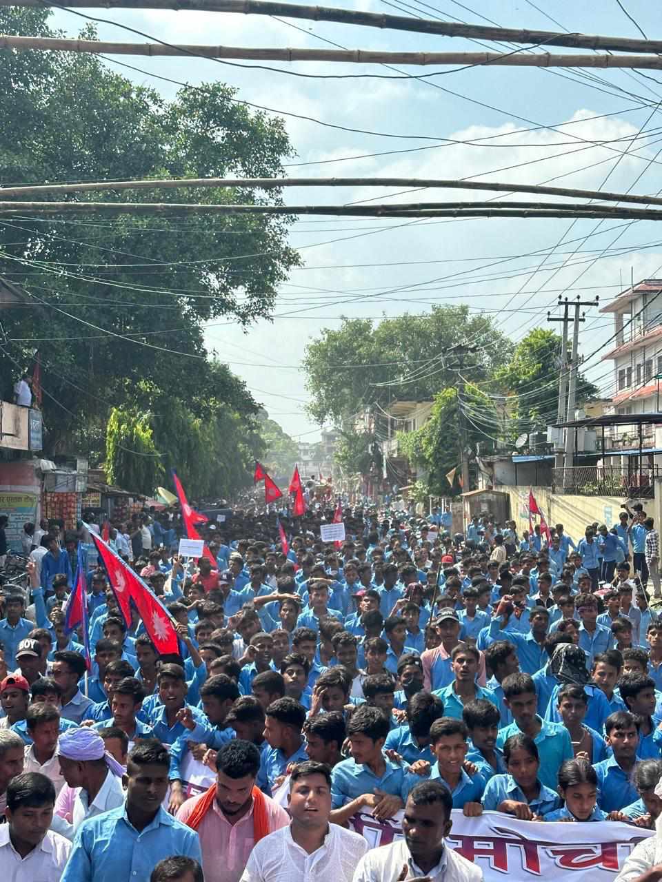 वीरगंज र गौरमा आम विधार्थी मोर्चाले आज प्रदर्शन गरेको छ । आम विधार्थी मोर्चाका इन्चार्ज उमेश कुशवाहाको नेतृत्वमा वीरगंजमा र विधार्थी मोर्चाका केन्द्रीय अध्यक्ष विवेक साहको नेतृत्वमा गौरमा प्रदर्शन भएको हो । प्रदर्शनमा विधार्थी, शिक्षक, अभिभावकका साथै स्थानीयको सहभागिता रहेको छ ।