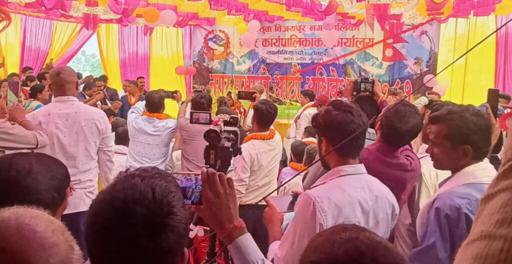 रूपेश यादव/राैतहट । रौतहट जिल्लाको उत्तरी र पश्चिमी भेगमा रहेको फतुवा बिजयपुर नगरपालिकाले चार महिना ढिलो गरि यस आर्थिक वर्षको लागि ६० करोड भन्दा बढीकाे बजेट पास गरेको छ । फतुवा बिजयपुर नगरपालिकाकाे आठौं नगर सभा तथा बजेट अधिवेशन कार्यक्रम यो पट्क गत वर्षको भन्द ढिला गरेको हो । नगरपालिकाको सभा हालमा शनिबार भएको आठौं नगरसभाबाट नगरपालिकाले आर्थिक वर्ष २०८१/०८२ का लागि कुल ६०करोड ७७ लाख सात सय ९८ रुपैया बजेट प्रस्तुत गरेकाे छ ।