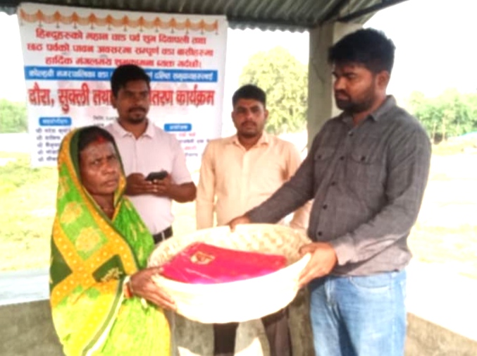 । कार्यक्रममा सो वडाको दलित समुदायका ४० जना महिलाहरुलाई दैरा, दौरा सुक्नी तथा साडी वितरण गरेका थिए ।
