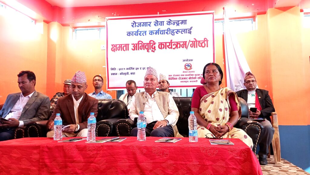 बारा । बारा जिल्लाको कोल्हवी स्थित वैदेशिक रोजगार बोर्डको सचिवालयले दुई दिने गोष्ठी संचालन गरेको छ । बोर्डले बारा, पर्सा र रौतहट जिल्लाका ४८ स्थानिय तहको रोजगार सेवा केन्द्रमा कार्यरत कर्मचारिहरुका लागि दुई दिने कार्यशाला गोष्ठी संचालन गरेको हो । कोल्हवी स्थित होटल रोज उडको सभाहलमा गोष्ठी संकलन भैइरहेको छ ।