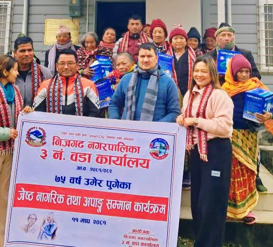 बारा । निजगढ नगरपालिका वडा नम्बर ३ को वडा कार्यालयले जेष्ठ नागरिक तथा पूर्ण अपाङ्ग र अतिअशक्त तथा अपाङ्गता भएकाहरुलाई सम्मान सहित पानी तताउने विद्युतीय सामग्री वितरण गरेको छ । निजगढ नगरपालिकाको आ.व. २०८१/०८२ को स्वीकृत वार्षिक योजना तथा कार्यक्रम अन्तर्गत वडास्तरीय चालुतर्फको बजेटबाट ज्येष्ठ नागरिक सम्मान कार्यक्रम अन्तर्गत वडाभित्रका ७५ वर्ष र सो उमेर भन्दा माथिका जेष्ठ नागरिक तथा पूर्ण अपाङ्ग र अति अशक्त अपाङ्ग भएकालाई शुक्रबार सम्मान गरेको हो । वडा कार्यालय भवनमा आयोजना गरेको सम्मान कार्यक्रममा एक/एक थान इलेक्ट्रिक जग समेत प्रदान गरेको छ । वडाभित्रका ८५ जना लाभग्राहीलाई चिसो मौषममा तातोपानी खान सहज होस् भनेर इलेक्ट्रिक जग वितरण गरिएको वडा अध्यक्ष गोकुलप्रसाद तिमल्सिनाले जानकारी दिए । वडा कार्यालयमा आउन नसक्नु भएका पूर्ण अपाङ्ग र अशक्तलाई घरमै पुर्याईने वडा अध्यक्ष तिमल्सिनाले बताए ।