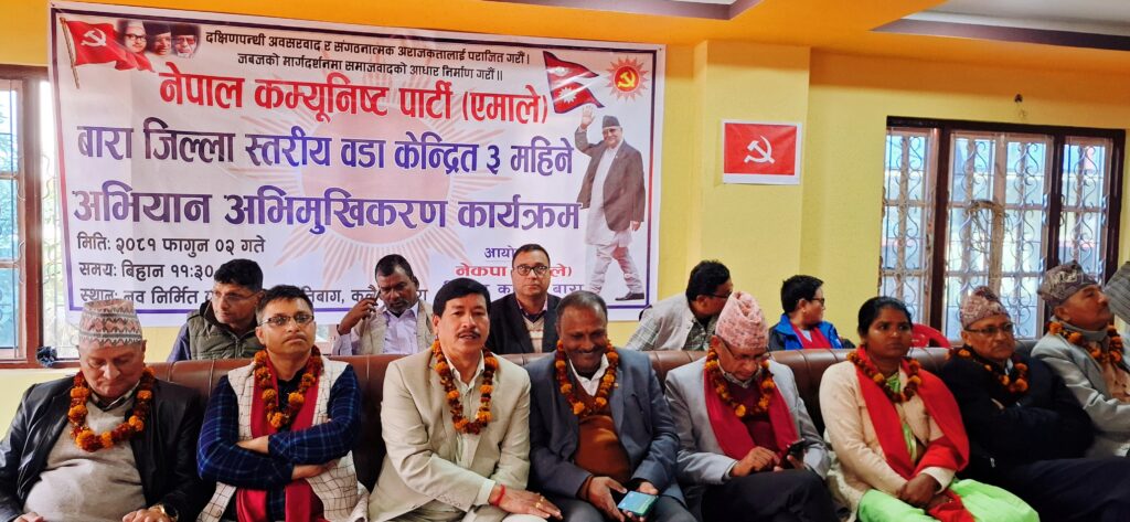 बारा । नेकपा एमाले बाराको आयोजनामा वडा केन्द्रीत ३ महिने अभियान सम्बन्धि अभिमुखिकरण कार्यक्रम बाराको कलैयामा आज शुक्रबारबाट सुरु भएको छ । कार्यक्रमको उदघाटन एमालेका उपमहासचिव प्रदिप ज्ञावालिले गरेका थिए ।