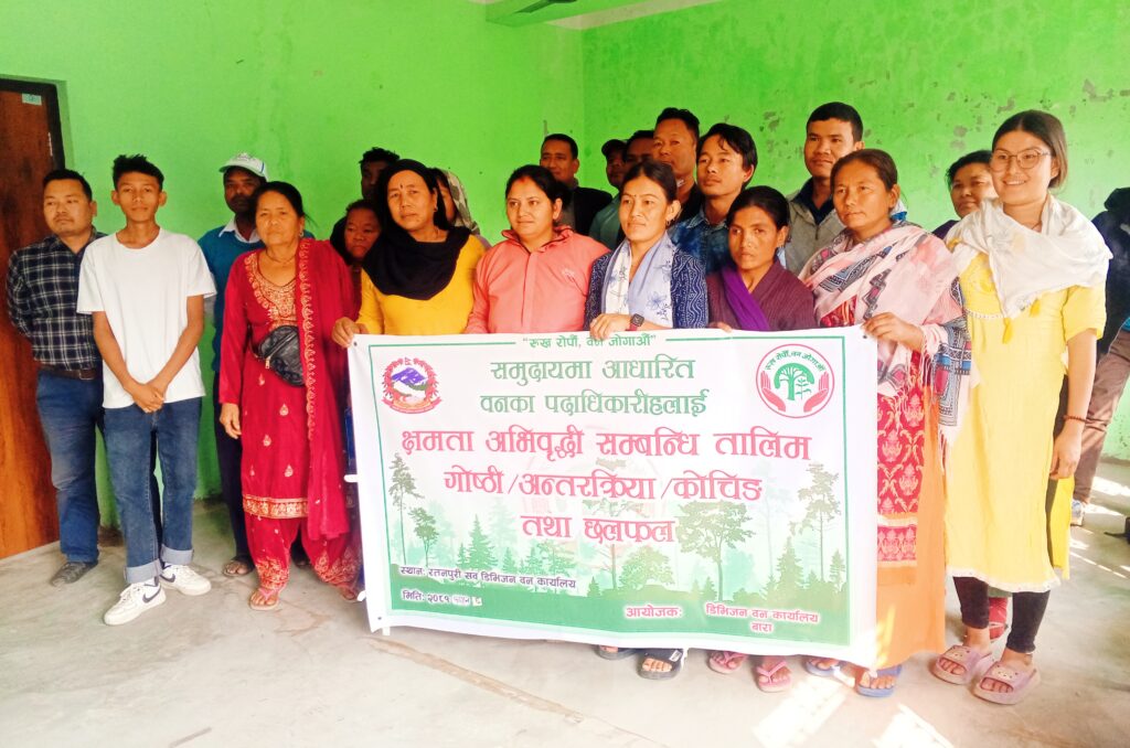 मधेस प्रदेशमा वन सम्बर्द्धन प्रणालीमा आधारित दिगो वन व्यवस्थापन कार्यविधि तयार भएर कार्यान्वयनको चरणमा रहेकोले कार्याविधिको अनुसार वन संरक्षणको क्षेत्रमा काम गर्ने क्रममा उत्पन्न हुनसक्ने समस्या समाधानको लागि सामुदायिक वन समूहका पदाधिकारीहरुलाई जानकारी दिइएको हो । सहभागीहरुलाई हालखोरीया सव डिभिजन वन कार्यालयका प्रमुख विनायकुमार साहले प्रशिक्षण दिएको थियो । कार्यक्रमको मुख्य आयोजक डिभिजन वन कार्यालय बारा सिमरा रहेको छ भने रतनपुरी सव डिभिजन वन कार्यालयले सहजीकरण गरेका थिए ।