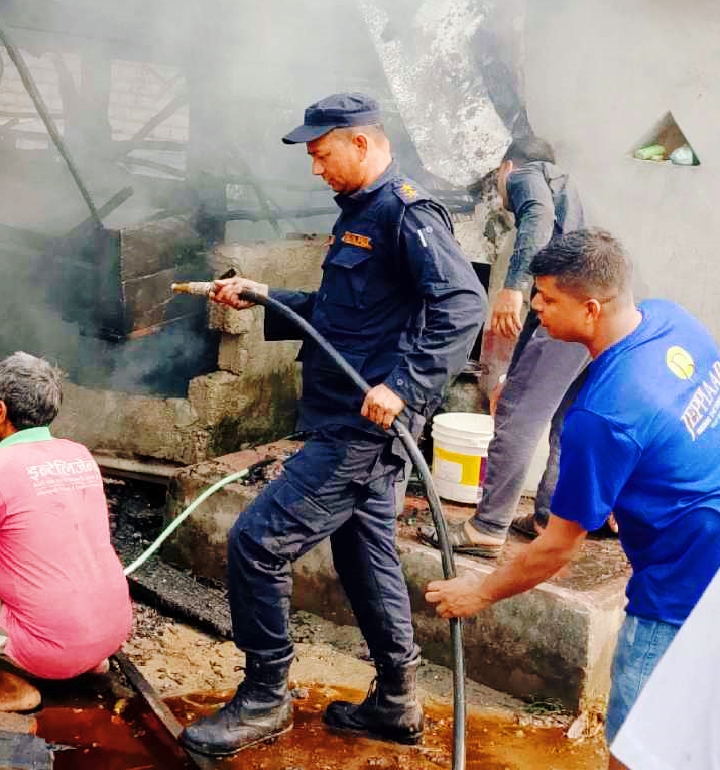 बारा । निजगढ नगरपालिका ६ सडकटोल स्थित एक घरमा आज विहिवार दिउसो आगलागी भएको छ । स्थानीय बच्चुराम घिमिरेको काठले बनेको घर र गोठमा दिउसो २.४० बजे आगलागी भएको हो । आगो निभाउने क्रममा सामान्य घाइते बनेकी घिमिरेकी श्रीमति ५५ वर्षिय सुनिता घिमिरेको स्थानिय मेडिकलमा सामान्य अवस्थामा उपचार भईरहेको निजगढ प्रहरीले जनाएको छ । इलाका प्रहरी कार्यालय निजगढका प्रहरी निरीक्षक सुमित कुशवाहाले दिएको जानकारीअनुसार आगलागीबाट करिब २० लाख बराबराको धनमाल जलेर नष्ट भएको छ । घरमा राखेको १ लाख नगदसहित अन्नपात, लत्ताकपडा र अन्य सामानसमेत गरी सो रकम बराबरको क्षेति भएको प्रहरी निरीक्षक (इन्स्पेक्टर) कुशवाहाले बताए । घिमिरेको घरमा लागेको आगो सल्किएर छिमेकी गोबिन्द बजगाईको घरको पालीमा समेत क्षेति पुगेको छ । आगलागीको खबर पाउने बित्तिकै इलाका प्रहरी कार्यालय निजगढ र बिपद ब्यवस्थापन सुरक्षा बेस क्याम्प निजगढबाट पुगेको सुरक्षाकर्मीको टोली, स्थानीय बासिन्दा र निजगढ तथा कोल्हबी नगरपालिकाबाट गएको दमकलको सहयोगमा दिउसो ३.२० बजे आगो नियन्त्रणमा लिइएको थियो । घरमा जडान गरिएको बिजुली तार सर्ट भर आगलागी भएको प्रहरीको भनाई छ ।