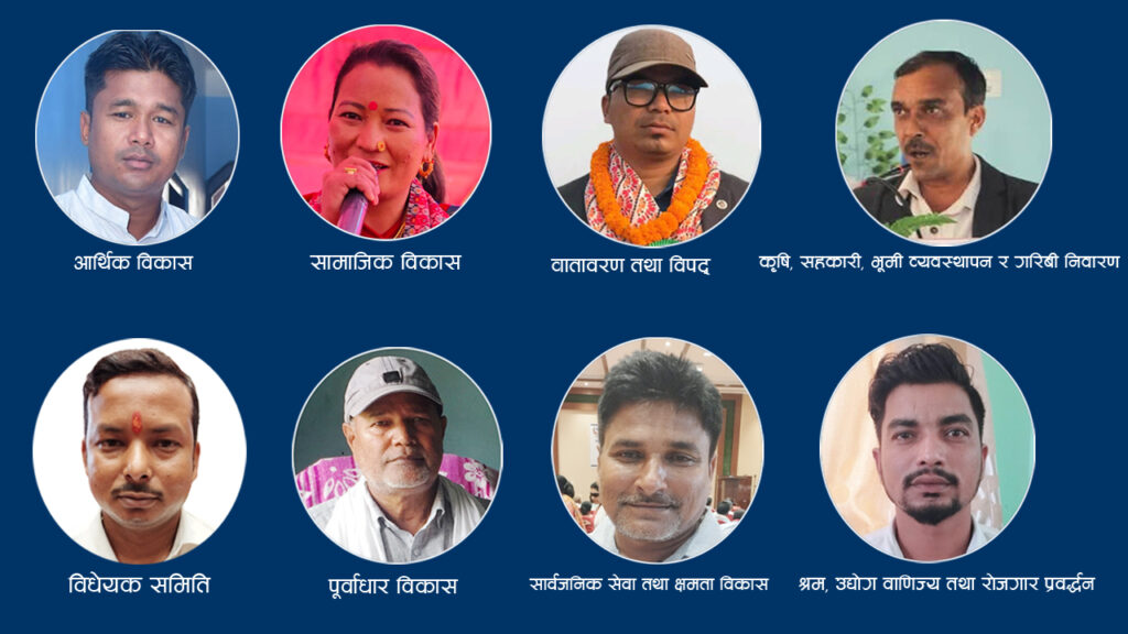 त्यस्तैगरी सार्वजनिक सेवा तथा क्षमता विकास समितिको संयोजकमा दिपेन्द्रकुमार क्षेत्री (जीतपुरसिमरा १९ का वडा अध्यक्ष), त्यस्तै सदस्यमा श्यामबाबु खाँ (जीतपुरसिमरा १२ का वडाध्यक्ष), पवित्रामाया कार्की (कार्यपालिका सदस्य) र प्रल्हाद साह सोनार (कार्यपालिका सदस्य) रहेका छन । त्यसैगरी उद्योग वाणिज्य तथा श्रम रोजगार प्रवर्द्धन समितिको संयोजकमा भने अर्जुन रसाईली विश्वकर्मा (कार्यपालिका सदस्य) लाई तोकेको छ । उद्योग वाणिज्य तथा श्रम रोजगार प्रवर्द्धन समितिको सदस्यहरुमा शिवशंकर महतो कोइरी (जीतपुरसिमरा ८ का वडाध्यक्ष), मुस्कतीम अंसारी (जीतपुरसिमरा २३ का वडाध्यक्ष) र मोतीलाल राउत (जीतपुरसिमरा ९ का वडाध्यक्षलाई बनाएको नगर प्रमुख पौडेलले जानकारी दिए । त्यस्तैगरी पुर्वाधार विकास समितिको संयोजकमा भने रसुल मियाँ अंसारी (जीतपुरसिमरा २० का वडा अध्यक्ष) लाई बनाएको र सद्स्यहरुमा हेमनारायण चौधरी (जीतपुरसिमरा १३ का वडा अध्यक्ष), प्रभावती देवी पासवान (कार्यपालिका सदस्य), माया विश्वकर्मा (आमन्त्रीत वडा नम्बर ३ कार्यवाहक अध्यक्ष) रहेका छ्न । त्यस्तैगरी सामाजिक विकास समितिमा भने १४ नम्बरकी वडा अध्यक्ष चयन गुरुङको संयोजकत्वमा चार सदस्यलाई जिम्मेवारी दिएको छ । सामाजिक विकास तर्फको जिम्म पाउने सदस्यहरुमा सुकुमाया कुमारी तामाङ्ग (कार्यपालिका सदस्य), विन्दालाल साह (जीतपुरसिमरा ११ का वडाध्यक्ष) र सुल्तान अंसारी (जीतपुरसिमरा २४ का वडाध्यक्ष) रहेको जनाएको छ । त्यसैगरि आर्थिक विकस समितिअमा भने जिरपुरसिमरा वडा नम्बर २१ का वडा अध्यक्ष सुवास श्रेष्ठ संयोजक बनाएको छ । जसमा सदस्यहरु शेखरकाजी रुम्बा (जीतपुरसिमरा २२ का वडाध्यक्ष), कैमुदिन अंसारी (जीतपुरसिमरा ६ का वडाध्यक्ष) र शिवशंकर महतो कोइरी (जीतपुरसिमरा ८ का वडाध्यक्ष) रहेका छन । त्यस्तै कृषि सहकारी, भुमी व्यवस्थापन समितिको संयोजकम जितपुरसिमरा वडा नम्बर १८ का वडा अध्यक्ष चतुरबाबु वाग्लेको नेतृत्वमा ४ सदस्य तोकिएको छ । जसमा बुद्धकुमारी अधिकारी (कार्यपालिका सदस्य), भिमबहादुर गंतान (जीतपुरसिमरा १७ का वडाध्यक्ष) र रामप्रसाद लामिछाने (जीतपुरसिमरा १५ का वडाध्यक्ष) रहेको जानकारीमा आएको छ । उपमहानगरपालिकाले वातावरण तथा विपद व्यवस्थापन समितिमा वडा नम्बर २ का वडा अध्यक्ष धनबहादुर श्रेष्ठ संयोजक बनाएको छ । वातावरण तथा विपद व्यवस्थापन समितिको सदस्यहरुमा सुनील गुप्ता (जीतपुरसिमरा ७ का वडाध्यक्ष), हिराबहादुर गुरुङ्ग (जीतपुरसिमरा १ का वडाध्यक्ष) र भोजबहादुर खत्री (जीतपुरसिमरा ४ का वडाध्यक्ष)लाई बनाएको छ । भने विधेयक समितिको संयोजकमा वडा नम्बर १० का वडा अध्यक्ष संजय पटेलको नेतृत्वमा पनि ४ सदस्य चयन गरेको छ । जसमा सदस्यहरु हरिदे
