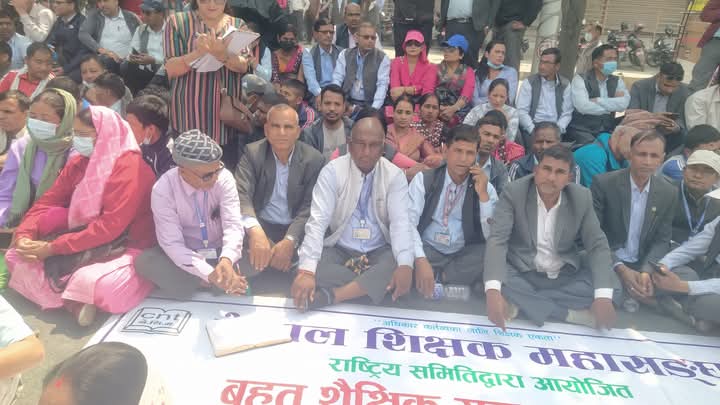 ‘माइतीघर मण्डलाको बबरमहल जाने तर्फको पूरै सडकमा बसेर प्रदर्शन गरिरहेको छ । आन्दोलनमा सहभागी शिक्षकहरुले सडक पूरै ब्लक गरेर प्रदर्शन गरिरहेको छ । सवारी साधन भने चलेको छैन । शिक्षक महासंघको नेतृत्वमा आन्दोलन भइरहेको हो । महासंघले आन्दोलन र वार्ता सँगसँगै लगेको छ ।