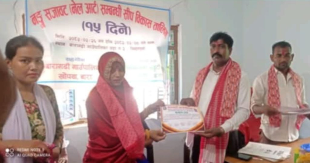 दिपेन्द्र जयसवाल/ बारा । बारागढी गाउँपालिका–२ बिशुनपुरवामा १५ दिने नेल आर्ट (नङ सजावट) सम्बन्धी सीप विकास तालिम सम्पन्न भएको छ ।