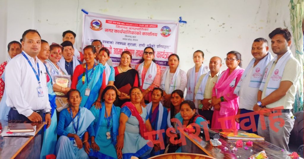 रतनपुर बारा । “आमा र बच्चाको स्वास्थ्य सुरक्षा, हामी सबैको प्रतिबद्धता” भन्ने नारासहित निजगढ नगरपालिकाले गर्भवती महिलाहरूका लागि निःशुल्क स्वास्थ्य परीक्षण, भिडियो एक्स–रे र पोषण परामर्श सेवा सुचारु गरेको छ । मातृ–शिशु मृत्यु दर घटाउने उद्देश्यले ‘उपप्रमुख हेल्लो आमा पोषण तथा सुरक्षा कार्यक्रम’ अन्तर्गत यो सेवा हरेक महिनाको अन्तिम शुक्रबार सञ्चालन हुदै आएको हो ।