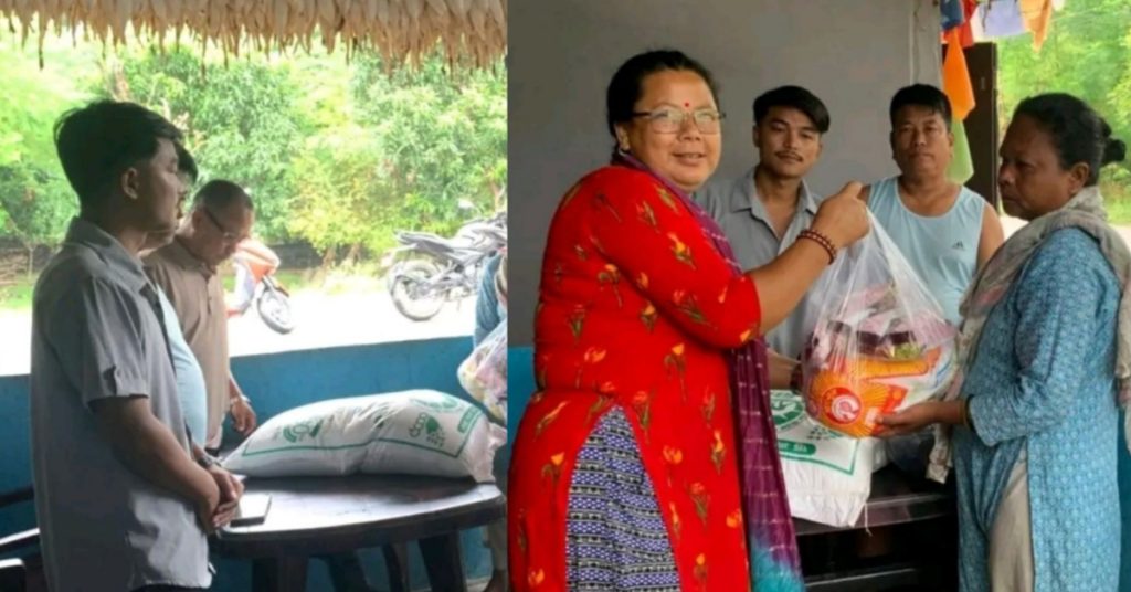 सहयोगस्वरूप प्रदान गरिएको सामग्रीमा एक बोरा चामल, पाँच पोका तेल, पाँच किलो आलु, पाँच पोका नुन, दुई प्याकेट चिउरा र दुई किलो दाल रहेका छन् ।