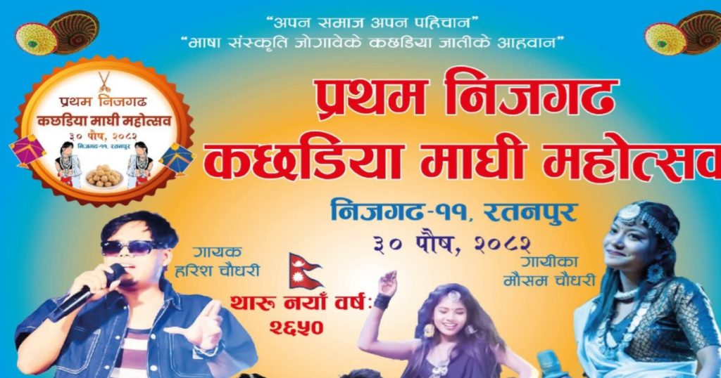 निजगढ (बारा) । आफ्नो समाज, आफ्नो पहिचान भन्ने मूल नारासहित निजगढ नगरपालिका–११, रतनपुरमा पहिलो पटक ‘प्रथम निजगढ कछडिया माघी महोत्सव’ आयोजना हुने भएको छ । भाषा, संस्कृति, परम्परा र पहिचानको संरक्षण तथा प्रवर्द्धन गर्ने उद्देश्यले कछडिया (थारु) समुदायको आयोजनामा महोत्सव हुन लागेको हो ।
