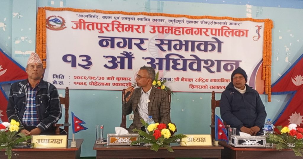 सिमरा । जीतपुरसिमरा उपमहानगरपालिकाको १३औँ नगर अधिवेशन सम्पन्न भएको छ । सिमरास्थित नेपाल राष्ट्रिय माध्यमिक विद्यालयको सभाहलमा सम्पन्न अधिवेशनले एक विधेयक र तीन समितिका कार्यविधि पारित गरेको हो ।