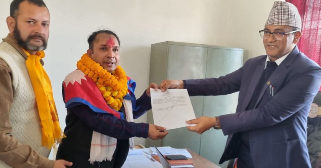 कोल्हबी, बारा । आगामी प्रतिनिधि सभा निर्वाचन २०८२ फागुन २१ गते हुने निर्वाचनका लागि बारा निर्वाचन क्षेत्र नम्बर १ बाट राष्ट्रिय स्वतन्त्र पार्टी (रास्वपा) का उम्मेदवार गणेश धिमालले आज आफ्नो मनोनयन दर्ता गराएका छन् ।