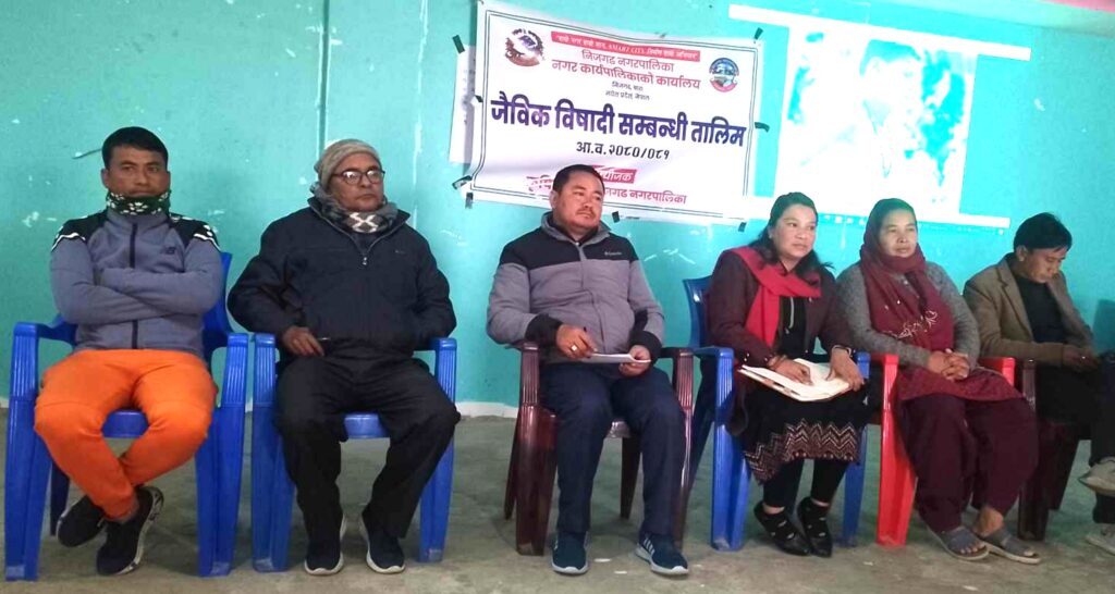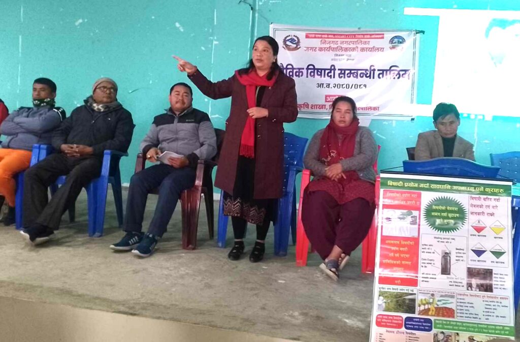 निजगढ नगरपालिका कृषि शाखाको आयोजनामा जैविक विषादी सम्बन्धित एकदिने तालिम गरिएको हो । आइतबार भएको कृषि सम्बन्धित कार्यक्रमको संचालन भने कृषि प्राविधिक रुपा पराजुलीले गरेकी थिईन ।