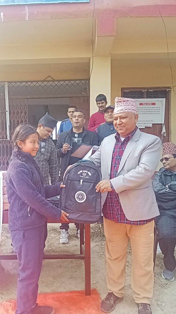 विभिन्न कारणले बिचैमा विद्यालय छाडेका र छाड्ने सम्भावना भएको हुँदा उक्त विद्यालयका विद्यार्थि १ सय ७० जना बिधार्थीहरुलाई सामग्री वितरण गरिएको हो । एसएलसी ४९ व्याच फाउन्डेसनको प्रत्येक सहपाठीहरुबाट आर्थिक संकलनगरी सो झोला वितरण गरेको फाउन्डेसनका सचीव दिपककुमार खड्काले जानकारी दिए ।